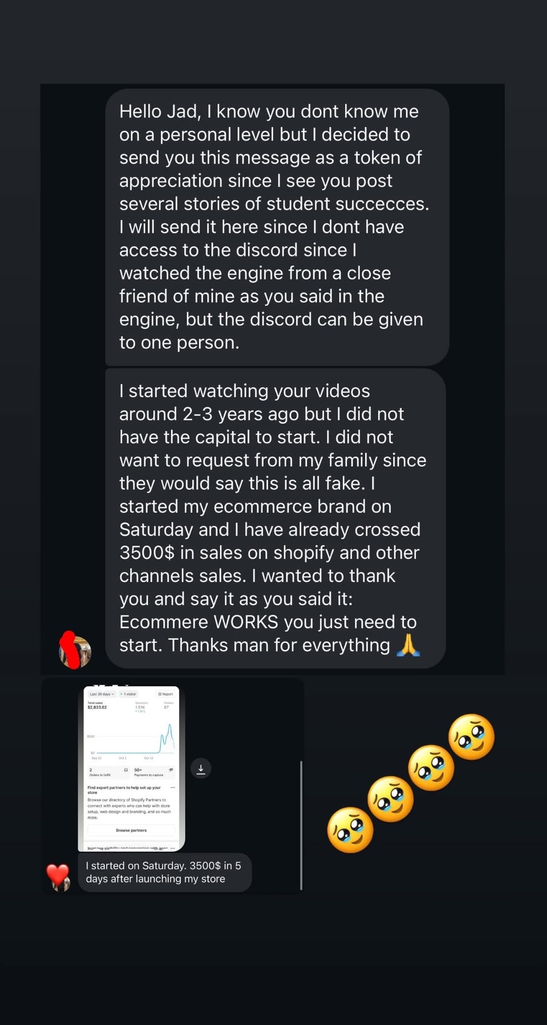 I was always interested in eCommerce - And just before I was about to open "The Vybe" I stumbled upon Jad's new course in 2021, and I'll be honest, Although I knew a lot about eCommerce I just believed that there is one thing I could learn from this course. I took it & fast forward, one of the best investments I've made in 2021. I learned a lot of secrets which I never knew existed, and they played a major role along side my efforts in making "The Vybe" one of the fastest growing fashion brands in Lebanon.