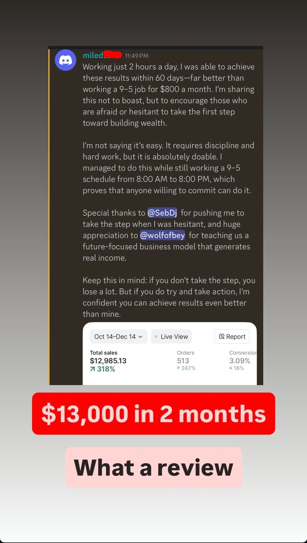 The results above are from people who have taken massive action on the strategies and the step-by-step training found in the WOLFOFBEY ECOMMERCE ENGINE mentorship program.