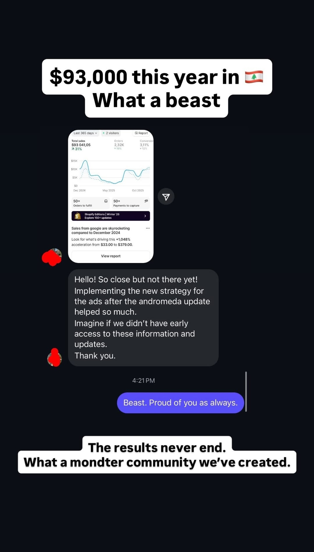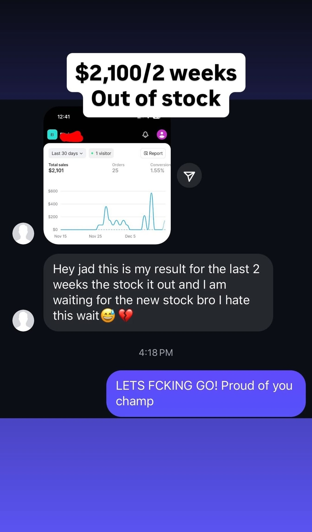 Before I show you More of my student results, here's the results from my own stores that are built on the same exact strategies i teach inside my wolfofbey ecommerce engine course: